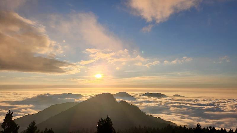 (中央社訊息服務20221026 13:26:33)阿里山秋冬天氣穩定乾爽,是一年當中雲海日出最容易看到的時節。阿里山國家森林遊樂區海拔約2,200公尺,目前氣溫約12-19度。雲海因地表水氣蒸散沿山坡上升,至高空遇冷空氣凝結成雲,雲團未達降雨程度也無法再繼續升高,層層聚積的雲團形成了風起雲湧的壯麗雲海景觀。每年10-12月正是來阿里山欣賞雲海、日出的最佳時機。