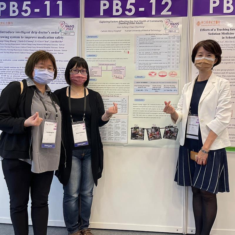 隨著平均壽命延長和老年失智人數逐年增加,口腔問題卻一直是失智長者最常見且經常被忽視的問題,因此,元培護理系研究生彭歆雅同學在洪兆嘉副教授指導下,針對失智長者口腔健康的相關因素進行研究;共收案60位失智長者,年齡介於65-80歲,分析結果發現,口腔清潔知識、潔牙行為的正確率都約為七成,貝氏刷牙技術檢核的正確率則只有五成,研究顯示應加強社區失智長者口腔清潔知識及透過活動設計提升正確的刷牙技術,此研究結果獲得評審的肯定及重視,獲頒優良海報獎。