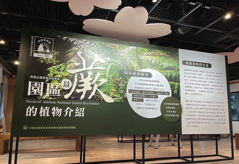 嘉義林管處表示,阿里山國家森林遊樂區位於海拔高度2,000至2,700公尺,位處雲霧帶,氣候經年潮濕,是一個非常適合蕨類生展的自然環境。園區蕨類植物種類繁多,經實地勘查、採集及鑑定,共記錄科屬27種,本次平面影像介紹12種,有柄囊蕨、臺灣瘤足蕨、裏白、小葉鐵角蕨、假毛蕨、斜方複葉耳蕨、東方狗脊蕨、書帶蕨、華鳳丫蕨、疏葉卷柏、頂囊擬鱗毛蕨、毛柄凸軸蕨等,對蕨類有興趣的民眾可以前往旅客服務中心二樓得到蕨類的相關知識和園區位置資訊,進一步前往園區欣賞野生的蕨類,展期至明(112)年2月15日。