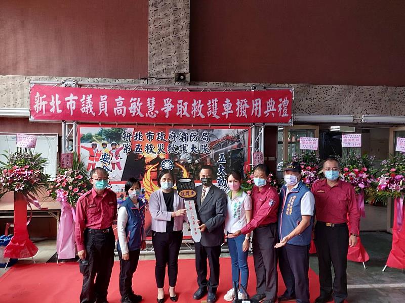 (中央社訊息服務20221028 11:35:01)新北市議員高敏慧為提升樹林區救護效能、守護市民生命安全,積極爭取購置新式救護車為地方服務,於111年10月28日上午10時30分在柑園消防分隊(新北市樹林區柑園街一段60號)辦理撥用典禮,由消防局副局長李清安代表受贈並回贈感謝狀。