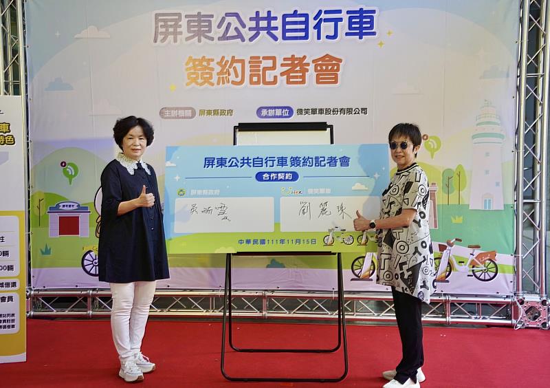 (中央社訊息服務20221115 14:24:17)屏東縣政府為提升公共自行車服務品質並擴大服務範圍,將於明年引進新一代的公共自行車系統微笑單車YouBike2.0,今(15)日由副縣長吳麗雪、微笑單車董事長劉麗珠於府內完成簽約儀式,縣府表示,將預計於屏東市、潮州鎮、東港鎮及恆春鎮設置130個站點,且和高雄市公共自行車系統相結合,可互相借還、不收取跨區調度費,未來將持續擴大量能,提供更優質及升級有感的公共自行車服務。