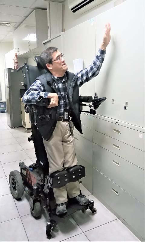 章譯因雙腳無法站立,資料上架或調借時無法處理高處檔案夾,而且年紀漸長,肌肉萎縮與手指關節病變持續惡化,按壓鍵盤電腦輸入等工作都有執行困難,於是國軍花蓮醫院協助章譯申請勞動部「推動職務再設計服務計畫」,經專家學者進行實地訪視、評估工作內容與需求後,依其工作需要提供「就業輔具」並進行「工作調整」及「工作環境改善」:除轉調他負責電腦檔案系統管理外,另再提供電動站立式輪椅,改善了章譯歸檔或調閱文件時需要請同仁協助的部分,並配備PDA個人數位助理,將登打電腦輸入資料改以PDA點選,提升了工作效率,同時,也調也整辦公室環境放置物品的位置,排除障礙物讓輪椅移行無礙順暢。