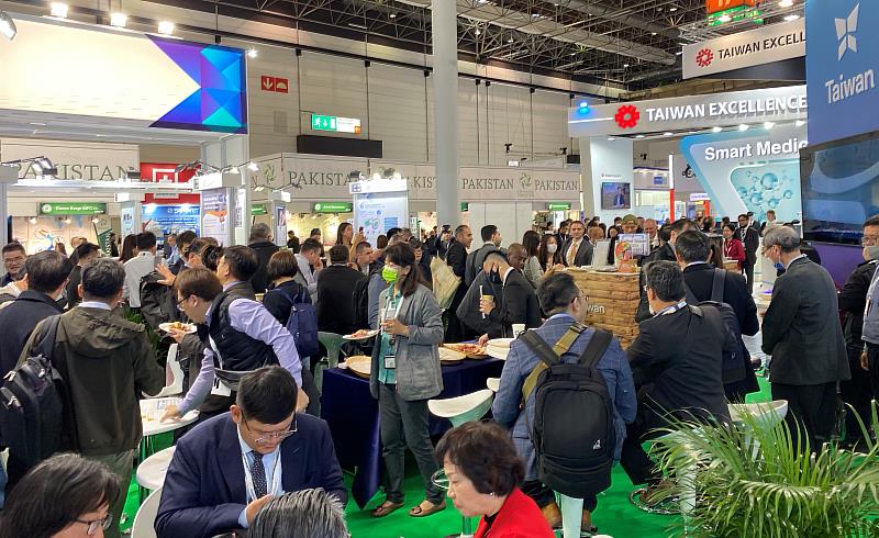為吸引買主與我國企業交流,臺灣館展期間策畫Happy Hour活動,以珍奶及噶瑪蘭威士忌等臺灣指標性飲品為主打,搭配開放式空間及輕鬆氛圍,首場即吸引多達113人爆滿參與,廣獲業者及買主好評。11/16則將舉辦歐洲遠距醫療商機說明會,強化掌握市場趨勢與布局拓銷。我國駐德大使謝志偉更親自現身為參展企業加油打氣,並與多家企業進行互動,為臺灣館注入了一劑強心針。