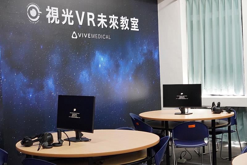 護理學院院長蔡秀鸞表示,為了豐富教學內容,讓學生的學習成效更好,學校特別斥資打造視光VR未來教室,導入知名大廠HTC的最新VR設備,學生可以透過VR裝置臨床練習,老師也可以運用VR設備設計教案,幫助學生發展專業。