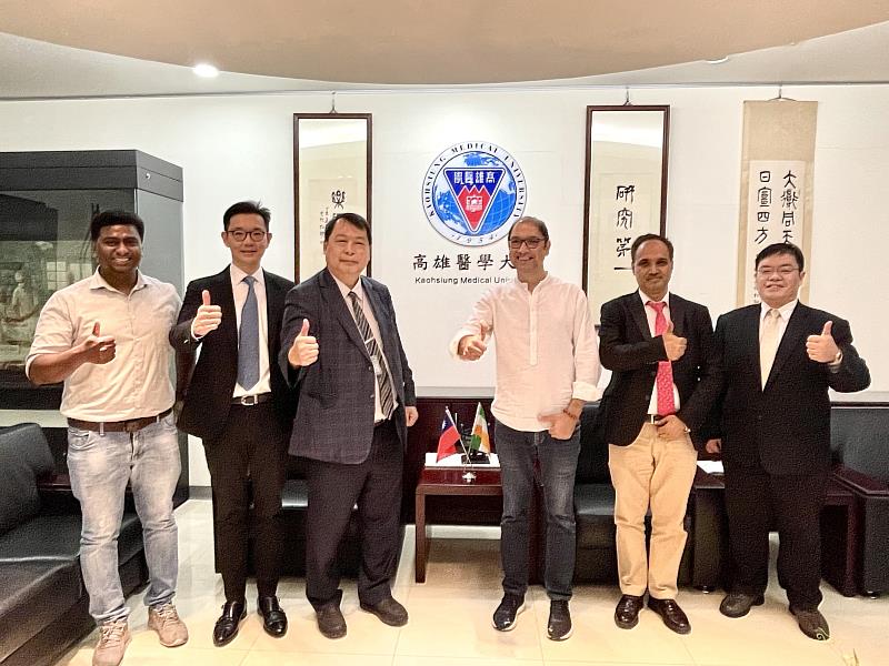 (中央社訊息服務20221129 09:26:43)隨著全球COVID-19疫情逐漸緩解,各國邊境逐漸解封的同時,世界各國之間的交流也逐漸恢復。印度私校中排名第三的蘇里尼大學(Shoolini University) 校長兼出資者Prof. Atul Khosla以及國際長Prof. Ram Prakash Dwivedi受教育部邀請,日前至高雄醫學大學參訪,由吳登強副校長帶領國際長藍政哲以及其他校內主管人員接待,共同商討雙方合作交流事宜,以強化高醫大與蘇里尼大學之學術交流。