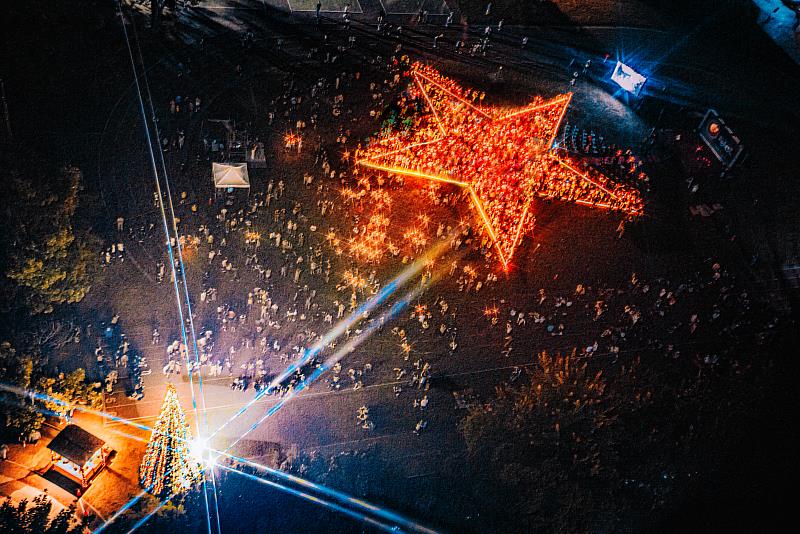 (中央社訊息服務20221129 11:34:48)一年一度的聖誕節即將到來,由天主教聖吳甦樂會創辦的文藻外語大學為迎接聖誕節,自11月底開始,精心策劃一系列的「將臨期」活動,並選在28日晚間於操場舉辦大型聖誕燃燈禮,號召上千名師生排成巨型星星,每人高舉蠟燭在夜空下閃閃發亮。典禮中同步點亮校內3.5層樓高的超大型聖誕樹,宣告聖誕節即將到來。