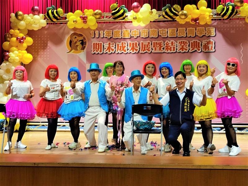 臺中市南屯區長林秋萬表示,南屯區長青學苑委託朝陽科技大學承辦已邁入第12年,每年開設包含語言、歌唱、舞蹈、手作、書畫、手機平板資訊等多元課程。111年度共開設33班,雖受疫情影響,上課學員仍近1,000人次,深獲社區長輩的肯定與支持。為來市府將積極為長者們創造新的生活目標,推廣高齡學習,希望長輩能夠走出室外,從中獲得成就感及自我肯定,並持續推動各項老人相關福利措施,打造友善樂齡,銀髮樂活臺中。