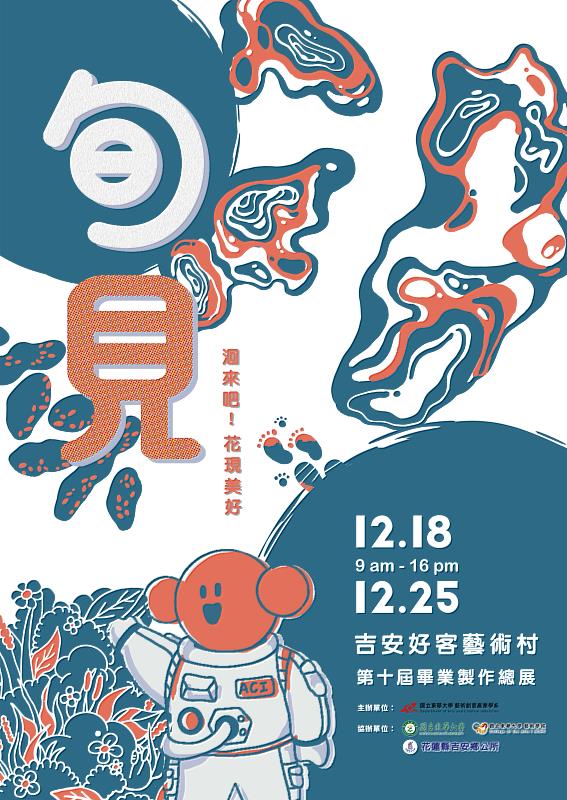 本次展覽在花蓮縣吉安鄉公所支持下,以吉安好客藝術村作為展出場地,讓藝術走入社區與民眾親近互動,也讓同學畢業製作的創意發想得以完整呈現,其中四大展區「山海」、「物產」、「生活」與「文明」,將19組品牌團隊不同媒材元素作品、不同風格故事歷程,以最美好姿態整合展出。除同學充滿創意作品外,展覽期間也將舉行三場講座,12月18日邀請禾翌創意的創辦人-卜唯平總監,24日與25日分別邀請藝創系畢業學姐,首飾品牌STACIA創辦人-陳希亞設計總監與小羊社會創新工作室的負責人-趙孝嚴,現場與民眾分享創意、創業等業界經驗,講座資訊請關注《旬見》臉書。精彩的展覽內容搭配上有趣講座,是您年底絕對不容錯過的藝術大事!
