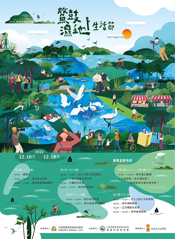 (中央社訊息服務20221209 10:19:40)鰲鼓濕地森林園區自101年開園迄今已滿十週年,林務局嘉義林區管理處為歡慶鰲鼓濕地森林園區開園十週年,將於12月10日(六)上午10點在東石自然生態展示館(嘉義縣東石鄉鰲鼓村四股54號)盛大舉行鰲鼓濕地生活節開幕式暨「看見自然的律動」開展,當天除邀請下楫國小國樂社表演及舉辦無痕山林永續市集之外,後續到12月18日(日)為止還有一系列快閃表演活動、生態講座小旅行及人工濕地步道佈展,邀請民眾一起來鬥熱鬧。