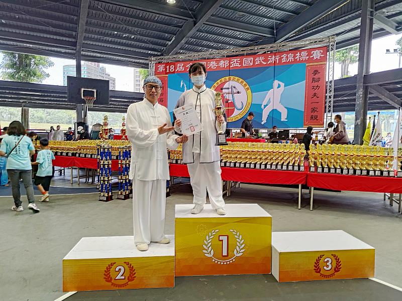 (中央社訊息服務20221214 15:28:48)南華大學學生社團「道家太極拳劍社」於日前(12月4日)參加111年「第18屆全國港都盃國武術錦標賽」,創下4金3銀之佳績。財務金融學系三年級羅凱薇同學一舉奪得「太極劍青年女子組」及「八法五步太極拳青年女子組」兩項第一名,並獲得「37式太極拳青年女子組」及「42式太極拳女子組」兩項的第二名佳績。國際事務與企業學系二年級王紫薰同學榮獲「八法五步太極拳青年女子組」第二名。該社團指導老師林奇憲為了鼓勵學生參賽,也親自下場參賽,並奪下雙金,分別是「42式太極拳男子組」第一名及「太極劍松年組男子組」第一名,此競賽該社團共奪得4金2銀之佳績,為學校爭取榮譽。