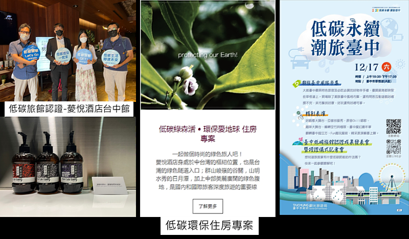 臺中市政府於12月17日(六)辦理「臺中市低碳認證成果發表會暨授證儀式」,當天現場還有旅宿業者及伴手禮業者的市集展售活動,並規劃許多精彩的表演,像是特技、魔術及歌唱等,除了豐富的市集活動外,還有闖關遊戲、QA問答以及抽獎活動,歡迎您一同前來參加,想瞭解更多薆悅酒店的低碳旅館透過輕鬆愉快的氛圍認識了解低碳旅館認證。