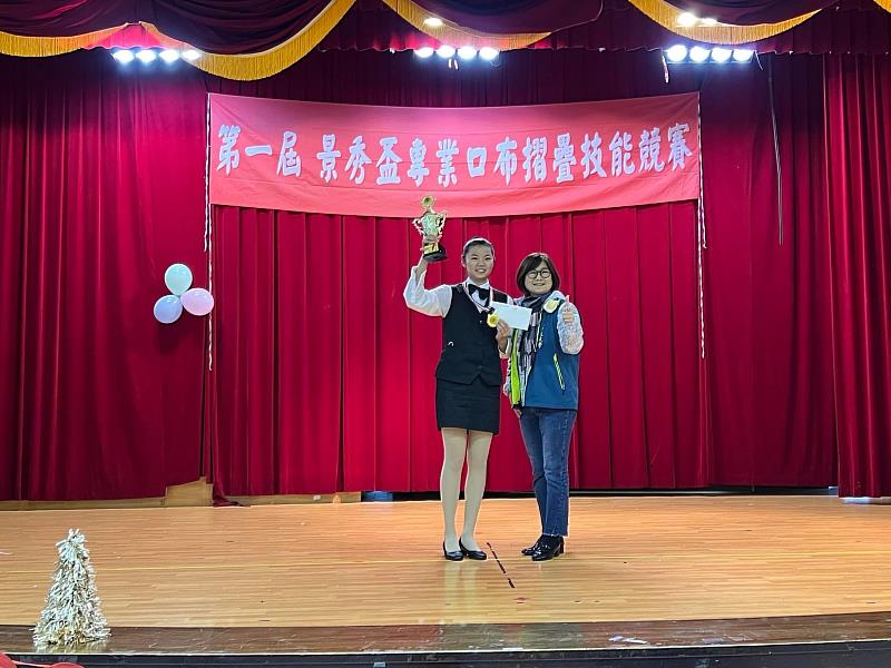 旅館管理系主任王斐青也表示,因應後疫情時代、餐旅業念臨最嚴峻缺工的考驗,已經有飯店喊出菜鳥實習生起薪就超過三萬元的條件之後,危機依然,大家在坐困愁城,各方只能希望學校能培養學生更高效率更敏捷的專業技能,來提升工作效率,他們只能期盼一個員工當成兩個人來用,他們也願大幅地提高薪資結構。該校旅館系目前正在君悅實習的學生已經有人每月的薪資所得逼近新台幣六萬元了,堪稱實習圈裡的扛霸子,所以只要你願意挑戰更厲害的自己,相信脫穎而出不是難事。為了積極陪養更多厲害的旅館業菁英,今年特別推出了摺疊口布技能競賽,此為餐旅業人員都需要具備的基本工作技能,希望藉由此比賽活動,將知識活用於工作技術中,並創造及發揮想像力,相互切磋交流,發揮多元的學習方式及互相觀摩。邀請全國高中職學生參與,增進餐旅服務技術交流、學以致用與互相切磋技術,提升餐旅服務品質,促進國內餐旅教育和產業快速發展。