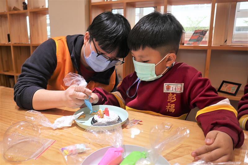 不論是小作所的服務對象或是特教生,社交技巧是與社會建立關係必備的重要能力,透過課程及活動的安排,他們就能有更多學習的機會。為此,在聖誕節前夕,彭福小作所因場地優勢,與彭福國小特教班合作辦理活動,讓身心障礙學員以小老師的角色,帶著國小生體驗薑餅屋DIY,為彼此送上聖誕祝福,擁有一個難忘美好的聖誕節。