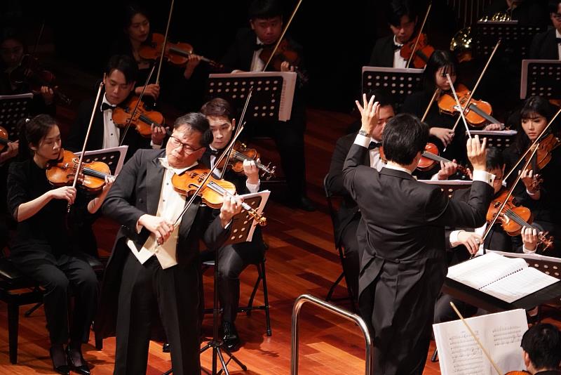 音樂會壓軸最大亮點莫過於演奏柴可夫斯基《1812序曲》,曲目演奏到最高潮時,表演廳燈突然亮起,站在二樓兩側的中央大學管樂社同學默契地共同加入演奏,將這首氣勢恢弘的磅礡樂曲從四面八方傳送到所有聽眾的耳中;安可曲目更加入中央大學管樂社及弦樂社參與演奏《中央大學校歌》,場面之雄偉浩大,近滿席觀眾忍不住起立鼓掌,歡呼聲不絕於耳!