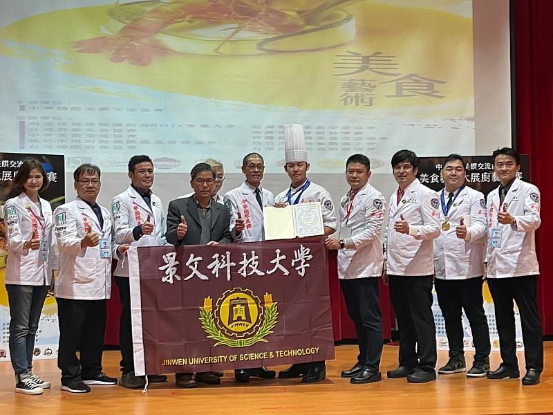 景文科大這次競賽不僅僅是料理比賽,其中比的更是考驗學生對於烹調技巧、上膠技術以及菜色搭配還有融入在地食材的一大考驗,這次獲得獎項之外,更一舉拿下青年組最高分殊榮,實屬不易,這其中反應的不單單只是學生的努力成果,更重要的是指導老師的細心指導,兩者搭配起來才能有這樣的一番成就。