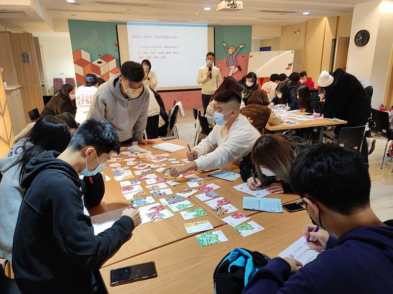 上午在YS諮詢師帶領下進行適性測驗,透過「尋嘗日」牌卡探索活動,盤點自我興趣與特質,從生活事件引導學生發掘自我,具體描繪出個人能力與價值觀,分析所屬類型,學習如何在現實生活中釐清自己的生涯走向;接著再透過YS的策展導覽,以互動遊戲方式,體驗現今產業趨勢與對應職能。