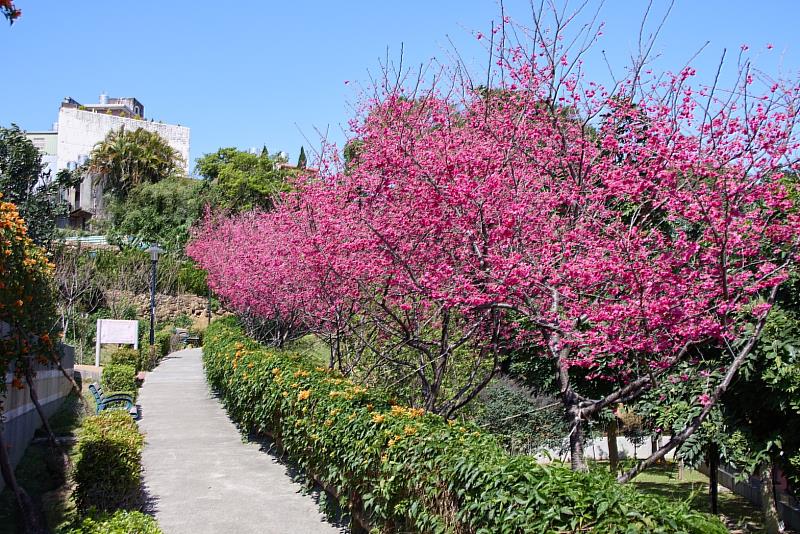 寶藏花園鶯歌永吉公園櫻花、炮仗花繽紛盛開