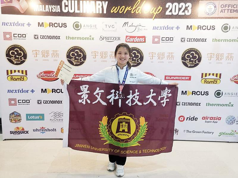 (中央社訊息服務20230224 11:35:31) 2023吉隆坡世界廚藝大賽景文科技大學餐飲系在高世達老師指導下,謝幸怡榮獲個人現場蔬果雕刻銅牌、蔬果雕刻展示金牌。