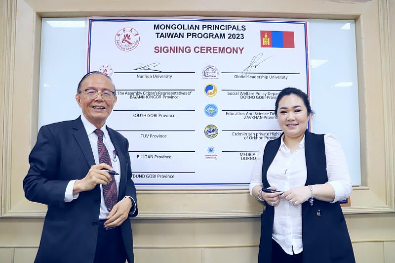 此次國際交流活動由蒙古的巴彥洪戈爾省公民代表大會主席Erdenee Enkhbat率南戈壁省省長、托夫省省長、布爾干省省長、中戈壁省省長、東戈壁省社會福利政策司司長、扎布汗省教育和科學部部長、鄂爾渾省Erdmiin san私立中學校長、東戈壁省醫科大學常務理事、全球領袖大學執行長、東戈壁省綜合醫院院長、巴彥洪戈爾省公民代表大會訊息部部長、中戈壁省公民代表大會訊息部部長、中戈壁省額爾登達萊區區長、南戈壁省社會福利政策司司長、南戈壁省社會福利政策司專員、托夫省省長法律部部長、托夫省社會福利政策部部長、巴彥洪戈爾省社會福利政策司專員、布爾干省社會福利政策部專員等一行20人蒞南華大學參訪。該校除了與蒙古全球領袖大學(Global Leadership University)簽訂學術交流合作備忘錄,也與來訪的蒙古國9個省政府官員共簽「三方策略聯盟合約」,藉以創造三贏的交流,提升國際學術交流與國際產官學合作。