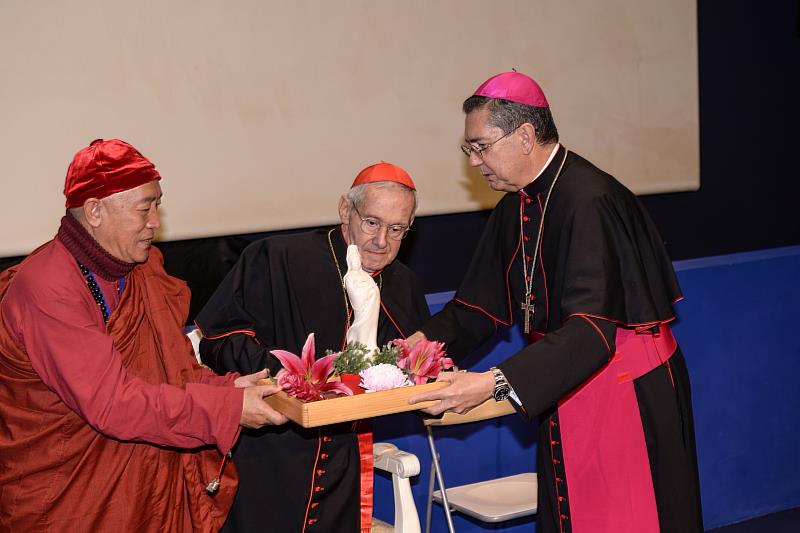 長年推廣愛地球愛和平的心道法師,其實和天主教有著很深的情誼。2017年11月,在靈鷲山聖山寺舉辦第6屆「佛教徒與基督徒的對話」國際研討會,透過聆聽與對話,齊聚一堂為宗教和諧、世界和平寫下新里程碑。當時參加研討會的現任梵諦岡宗教交談委員會主席的基彌格主教(H.E.Msgr.Miguel Angel Ayuso Guixot,M.C.C.J)、秘書長英督尼神父(Msgr.Indunil JanakaratneKodithuwakku Kankanamalage) 和副祕書長的鮑霖神父(Paulin B.Kubuya),和心道法師建立深厚的友誼。