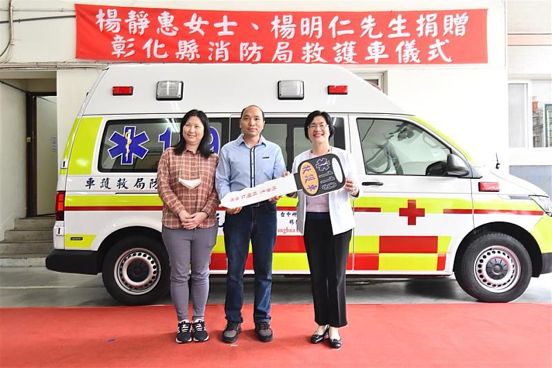 此外,為解決消防人力不足問題,消防局明(113)年也預計擴充預算員額40人,即預算員額由780人增加至820人,以補足消防人力,強化救災救護及防災能量。相信這次捐贈的高頂救護車加入彰化縣消防局緊急救護行列,將有助提升彰化縣到院前緊急救護品質,再次感謝楊家姊弟的善心義舉,期待能發揮拋磚引玉的效果,引領各界投入更多的公益善行,共同創造美好彰化、希望城市!