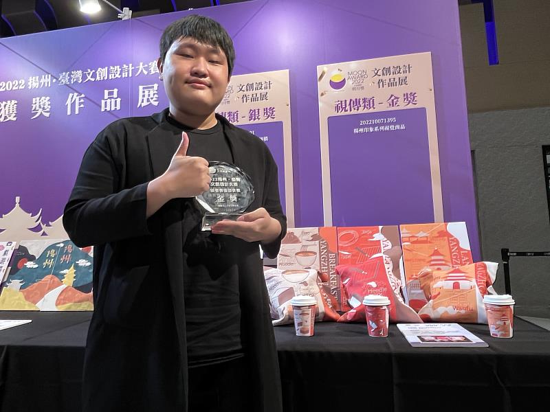 (中央社訊息服務20230411 14:00:25)「月亮城盃」2022揚州·臺灣文創設計大賽頒獎典禮於4月6日在台北三創生活園區5樓CLAPPER STUDIO舉辦兩岸同步的雲端頒獎典禮,崑山科技大學視覺傳達設計系共有4件作品晉級,並分別榮獲1金、1銀、1銅及1優秀獎。其中,一年級黃胤展「揚州系列視覺商品」勇奪年度視覺傳達設計類唯一金獎,表現相當突出!
