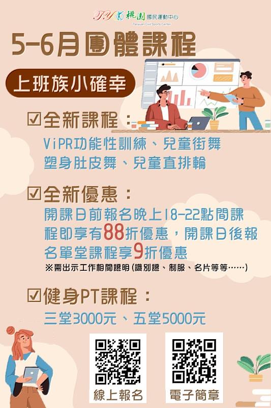 桃園國民運動中心2023運動課程 112-3期(5-6月)運動課程,上班族們看這邊!