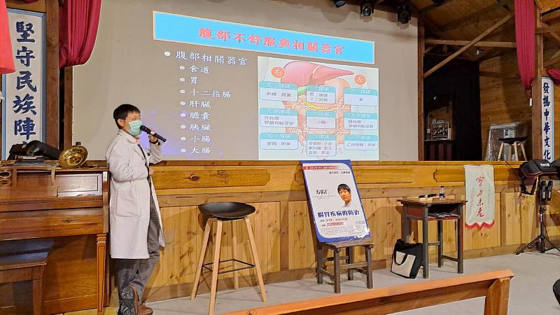 (中央社訊息服務20230421 10:53:52)南華大學與台北經營管理研究院共同主辦,大林鎮公所、大林鎮民代表會、大林萬國戲院共同辦理的「2023現代華佗大林開講」,日前邀請台大雲林分院肝膽醫學中心主任方佑仁,以「胃腸疾病的防治」為題,與大家分享健康保健資訊。