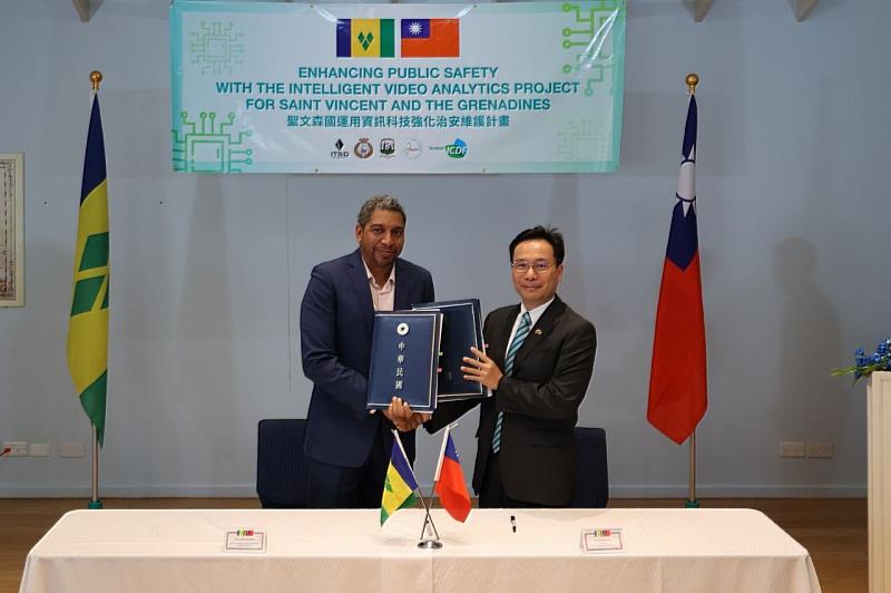 (中央社訊息服務20230425 11:35:20)財團法人國際合作發展基金會(國合會)在本(112)年3月10日,於我國友邦聖文森國啟動為期3年的「運用資訊科技強化治安維護計畫」,由駐聖文森國大使藍夏禮與聖國財政部龔沙福(Camillo Gonsalves) 部長簽署計畫執行協議,國合會將運用臺灣智慧科技優勢,協助聖國提升城市治理能力,利用即時影像監控加強警方掌握治安熱點,同時培訓公私部門人員影像智慧分析技術,以縮短案件偵查時間,並強化資訊系統應用效能及永續性。