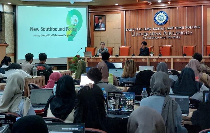 (中央社訊息服務20230505 18:15:55)駐泗水辦事處處長邱陳煜應邀於4日赴印尼知名學府國立Airlangga大學參訪,並在該校政治及社會科學院以「新南向政策:臺灣之地緣政治觀點」(New Southbound Policy: From Geopolitical Taiwanese Perspective)為題進行演講,全程2小時,60餘位學生出席,且有10位學生相繼提問,反應熱烈。
