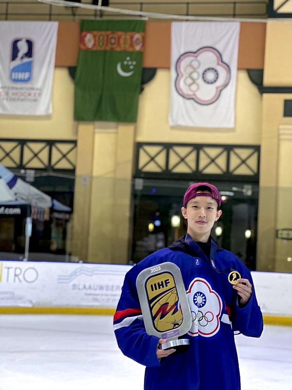 (中央社訊息服務20230506 09:56:44)新北市政府消防局特搜大隊南雅分隊替代役周宏秝代表中華隊赴南非參加冰球3級A組世錦賽,奪得16年以來首面成人代表隊金牌,創下中華冰球隊成軍以來最佳成績。