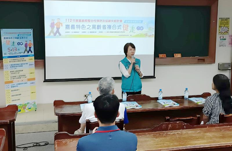 嘉縣衛生局健康促進科長張秝淇致詞時說,很多長輩可能一天會遶操場5圈、10圈,雖然已達到運動量,但肌群訓練過度集中,就像減重會出現停滯期,運動也會,所以為提高民眾運動的興趣,也訓練到全身肌肉群,今年首度試辦「高齡者複合式健走」,透過拐杖式健走、邁大步健走等多種健走方式交替,強化身體各部分的肌耐力,讓長輩的肌群照顧可以比較全面。張秝淇說,30位種子師資會進到東石、布袋、六腳、中埔、大林和民雄等地社區落地教學,通過衛生局考試且達到標準者,將授予指導員證書,期許能有助於高齡長者在戶外健走中獲得提升身心靈的效益,也希望未來能再向中央爭取經費,擴大師資人數。
