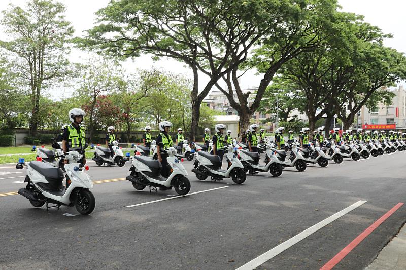 (中央社訊息服務20230518 11:09:50)嘉義縣轄區幅員遼闊,員警值勤騎機車時除了崎嶇的山路外,還有沿海海風吹拂致車輛極易耗損,警察局112年度編列1054萬1,000元汰換逾齡警用機車,採購140輛巡邏機車均已驗收完畢,將配發各外勤單位,讓同仁更有效打擊犯罪,縣長翁章梁18日主持授車及校閱儀式,勉勵警察同仁以全新設備持續保障縣民生命財產安全,也重申警方的公權力不容罪犯挑釁。