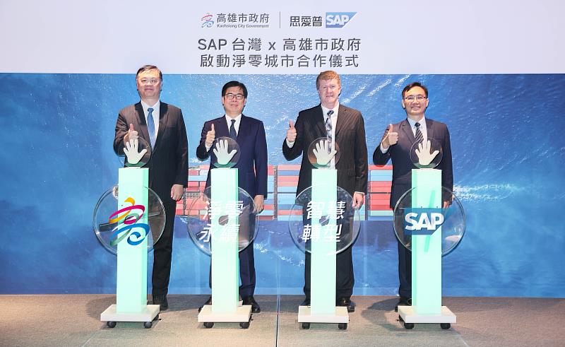 (中央社訊息服務20230518 17:10:27)全球企業級解決方案領導商SAP(思愛普)台灣今(18)與高雄市政府啟動淨零城市合作,並宣布於高雄打造首座全球ESG研創中心,以「深耕台灣、賦能產業、接軌國際」三大戰略方向,助攻重工業者轉型永續智慧企業、接軌國際綠色商機。高雄市長陳其邁出席致詞時感謝SAP投資高雄,強調市府一定會扮演最好的合作夥伴加速淨零轉型。