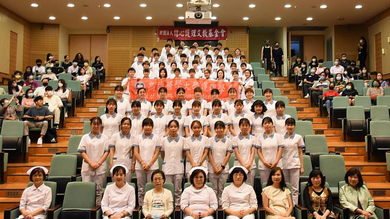 高雄醫學大學護理學系5月20日舉辦年度盛事「加冠導光典禮」,由院長李碧娥、系主任林淑媛、學系老師及校友導師,為護理學系二年級54位女學生戴上護士帽及14位男學生別上名牌,透過導光、加冠和宣誓的儀式,傳承南丁格爾和護理先進們的專業精神。
