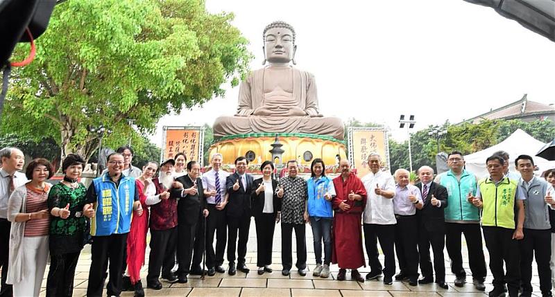 (中央社訊息服務20230526 16:13:06)彰化縣政府積極推動文化資產修復有成,完成彰化縣最重要的精神地標「八卦山大佛」的修復,八卦山大佛自蓮花座至佛身,計有七丈二尺高,曾是東亞第一大佛,為台灣歷史建築百景之一,八卦山也是彰化八景之首,彰化縣文化局特選在慶祝佛教創始人釋迦牟尼佛誕生的日子浴佛節,26日(農曆4月8日)上午辦理「彰化縣歷史建築彰化八卦山大佛修復工程竣工典禮」,縣長王惠美、文化部常務次長李連權、財團法人八卦山大佛風景協會董事長張世良與各級民代、熱情鄉親、嘉賓雲集,一起出席見證竣工典禮這歷史的一刻,王縣長表示,在建縣300年,又是浴佛節,天空也下起一些雨,與大家一起見證歷經一甲子的「八卦山大佛」修復完竣,讓這個台灣歷史建築百景之一,重現風華,倍具意義也相當殊勝,不僅成為彰化縣文化資產歷史建築修復的亮點,也讓這個有大家共同記憶的彰化守護神,持續守護、陪伴彰化縣民。
