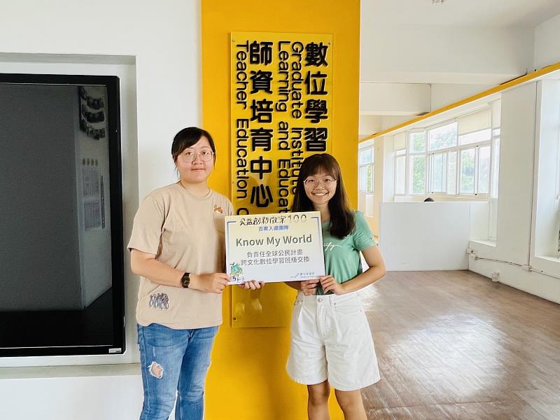 (中央社訊息服務20230605 09:58:48)臺科大數位學習與教育研究所洪子詅及黃子瑄,以社會福祉類的「負責任全球公民計畫-跨文化數位學習班級交換」計畫,與「 Know My World」非營利組織團隊合作,獲選數位部產業署「公益創新・徵案100」公益100活動的百案之一。