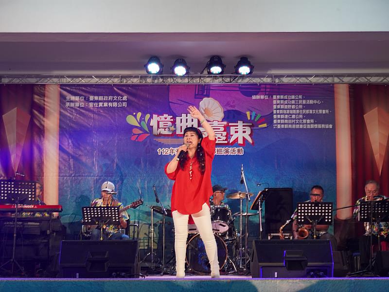 臺東縣政府文化處為推廣文化平權,重視偏鄉民眾文化育樂需求推出「憶曲來臺東-112年臺東藝術下鄉巡演活動」,3日晚間在達仁鄉舉辦年度壓軸場,演出藝人包含小調歌后蘇霈、飛揚歌手凃佩岑、秀場女王向娃、雙棲歌星邵大倫與藝起大樂團熱情開唱,不但歌曲動聽,演唱的經典名曲更引起民眾共鳴,紛紛主動與藝人唱和,形成台上台下交融合唱的歡愉畫面。