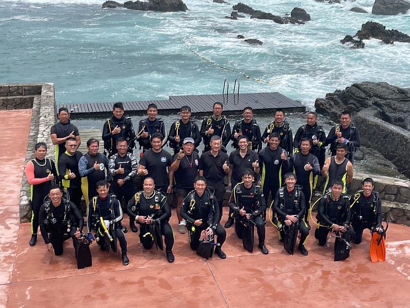 (中央社訊息服務20230606 16:18:22)為強化新北市消防局消防人員水域救援能力,新北市政府消防局於5月22日起假龍洞灣海洋公園潛水場域辦理為期2週「潛水搜救隊進階救援潛水員訓練」。