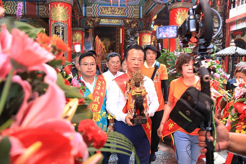 翁章梁說,今天所有信徒都很虔誠,一起參與莊嚴的儀式,迎請騎虎尊王上轎繞境祈求庄頭平安,若民眾來到民雄都歡迎前來參拜。