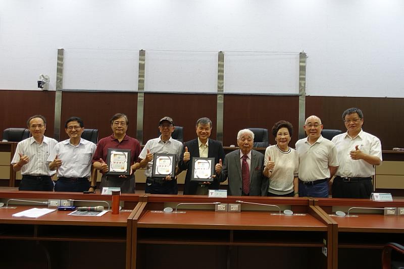 (中央社訊息服務20230615 )樹德科大人事室昨日藉由本學期第2次校務會議開會前,頒贈退休教師感謝牌,年邁的創辦人嚴超前董事長與夫人嚴沈秉傑董事二人犧牲午休時間,親自蒞校頒贈「樹德樹人」獎牌感謝即將在7月底退休的校長陳清燿;另外二名退休教師陳崇裕與吳俊德則由陳校長頒贈獎牌,董事長朱元祥因公務出國不克參加。神采奕奕的嚴超創辦人,其熱情招呼的手勢及親切的態度,讓氣氛顯得格外溫馨。