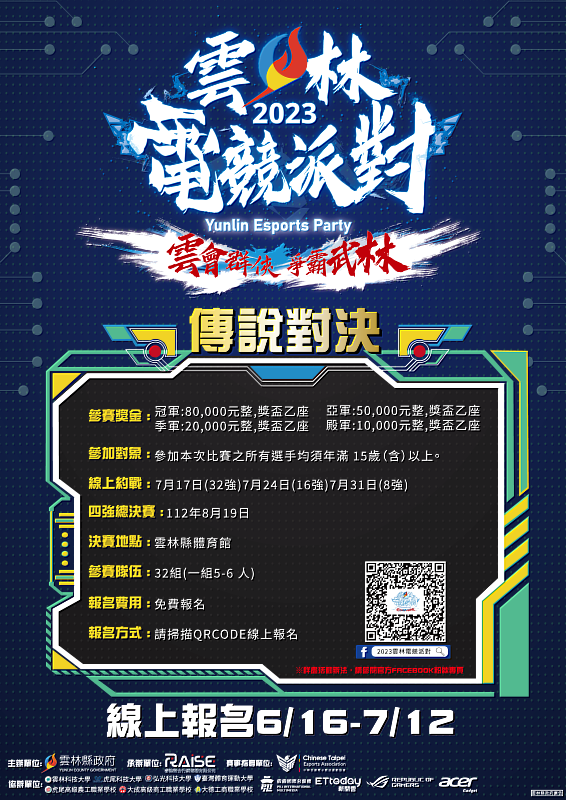 欲參賽的民眾可至「2023雲林電競派對」活動臉書或下方報名連結報名。