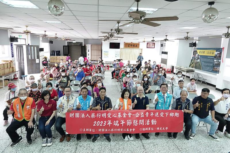 有鑒佛光大學多年接受礁溪鄉鄉民們的照顧與疼愛,特別舉辦「財團法人蔡衍明愛心基金會-公益青年送愛下鄉趣 2023 年端午節慰問公益活動」,蔡衍明愛心基金會徐海倫執行長、佛光大學校長何卓飛校長、佛大學務長許鶴齡、學務處生輔組組長楊俊傑、礁溪鄉鄉長張永德鄉長、礁溪鄉民代表會吳政展副主席、吳錫祺鄉民代表、礁溪鄉三民村村長賴阿華村長,以及佛光大學暖全服務社項允柔社長等人,皆出席親手致贈補助金,溫暖弱勢,歡喜度過端午佳節。