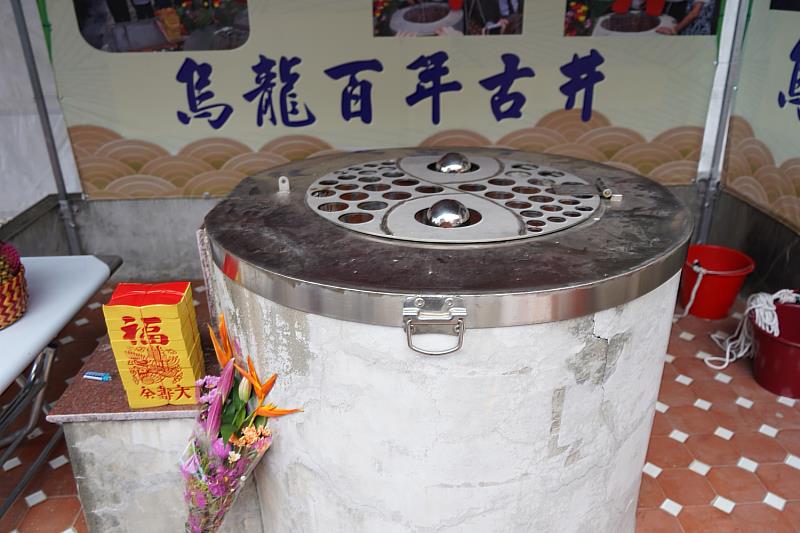 新園鄉烏龍村百年古井是180年前清道光年間,烏龍地區因為發生怪病,村民求醫問診無效,請示龍聖宮媽祖指點,必須挖取神龍泉水救治,再以牛車輪法器丟入井中收伏神龍,即可確保泉水源源不絕。村民依照媽祖指示,取水飲用、清洗後,身上的怪病痊癒,加上井水甘甜清澈,成了當地村民的生活飲水,而且百年來古井流水不斷。現代社會雖然已不使用水井,但每年端午節仍會開井「汲午時水」,供民眾消災、解厄、保平安之用。