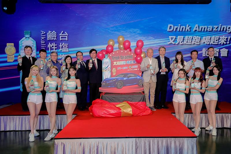 (中央社訊息服務20230629 16:08:53)「台塩海洋鹼性離子水」29日舉辦記者會,由高人氣富邦女孩(Fubon Angels)以熱舞開場,現場除頒發經典傳奇超跑TOYOTA GR SUPRA給抽獎幸運得主外,並由臺鹽公司總經理陳世輝,欣臨集團董事長陳海天、總經理陳德仁,以及和泰汽車TOYOTA車輛部部長林裕昌,共同出席慶賀「台塩海洋鹼性離子水」淡季業績開紅盤,並宣布加碼再抽人氣超跑TOYOTA GR86一台,七月一日起,「台塩海洋鹼性離子水」「Drink Amazing又見超跑 喝起來」!