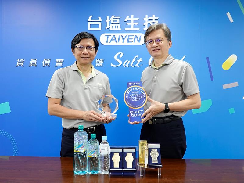 臺鹽公司表示,Monde Selection國際品質評鑑是國內外各大品牌極力角逐的獎項,在品質、風味和創新評鑑具國際公信力。臺鹽自2014年起每年都獲得特金獎、金獎等殊榮,其中在臺灣人手一瓶的「台鹽海洋鹼性離子水」,以及展現MIT生技成果的綠迷雅系列美容保養品,有7次獲獎紀錄,在實驗數據、創新研發和包裝設計上,屢屢贏得評審高分讚賞。