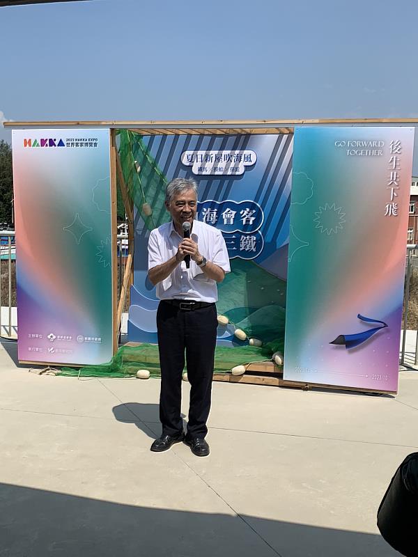 (中央社訊息服務20230717 09:31:32)客委會副主任委員范佐銘(16)日蒞臨桃園永安海螺文化館參加《海客三鐵,夏日新屋吹海風》活動,范副主委致詞時表示,此次山海會客、海客三鐵的活動提到「後生共下飛」,就是希望更多後生年輕人能共下來參加,不論是否聽懂客家話,都希望大家有機會能多講客家話,認識豐富的客家文化!客委會將同地方政府一起努力打拚,讓客家文化永續發展下去!