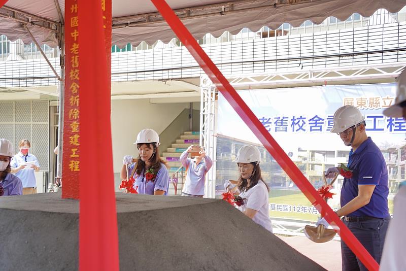 教育處說,三角屋頂教學大樓經耐震能力評估後列入「112-114年度老舊校舍拆除重建」工程,由縣府補助9,771萬8,000元整經費,委由徐岩奇建築師事務所設計及監造,仁喆營造有限公司承包施作,工期為550日曆天,預計114年1月完工。