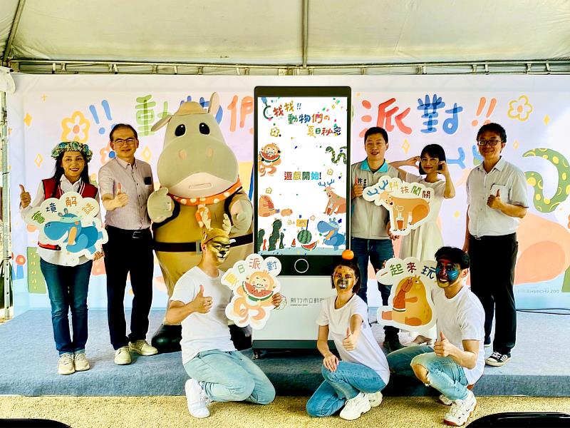 新竹市立動物園長楊礎遠說,「動物們的夏日派對」全新實境解謎遊戲「找找!動物們的夏日秘密」,結合園區實景設計4大關卡共9道題目,其中3道關卡位於園區內,另1加碼關卡位於園外的台灣昆蟲館-新竹分館;並以動物園實景來設計題目,包含動物知識與園內的歷史建物如大象門、噴水池,民眾可以依據遊戲指示,觀察實景或是在現場的介紹立牌中尋找答案。此外,也設計AR特效框讓民眾與河馬樂樂同框拍照,上傳動物園FB粉專還可以抽擬真老虎娃娃!