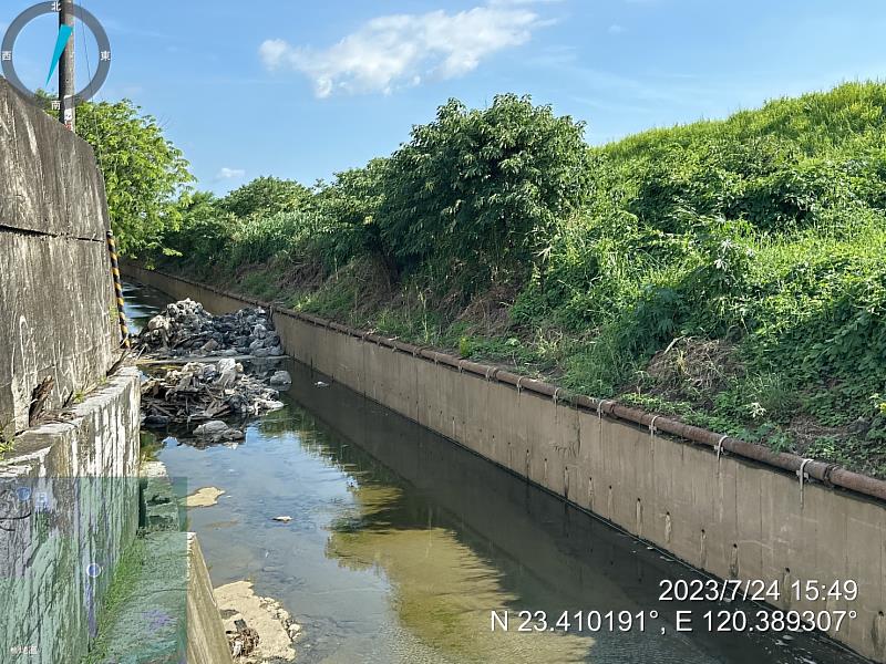 環保局表示,水上鄉溪洲村排水溝於7月21日及24日深夜遭棄置廢棄物共2車次,近期適逢午後熱對流雷雨頻繁,導致部分廢棄物遭沖刷而漂散至下游情形。